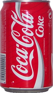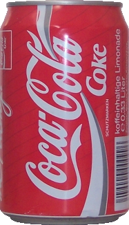 '90 großes Schutzmarke / koffeinhaltig im Coca-Cola-Logo |