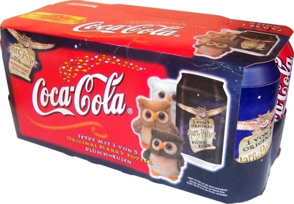 7 Coca-Cola Dosen und eine Plastikdose mit Eule