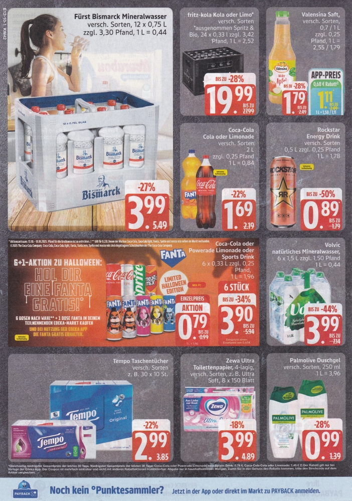 | Sixpack für 3,99 €. Anmerkung: Abgebildet wurde ein Fanta Sixpack im alten Design von 2023. | ||||||