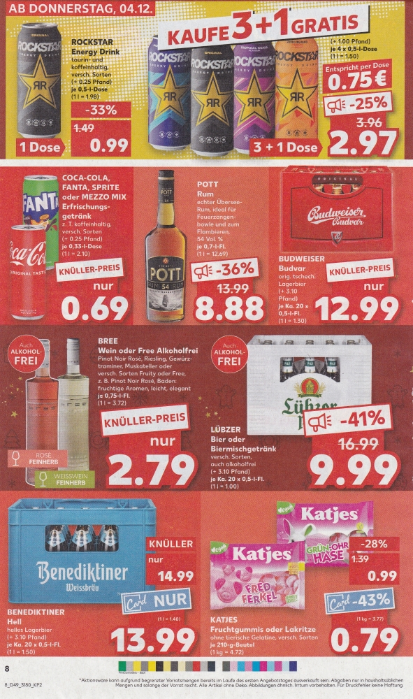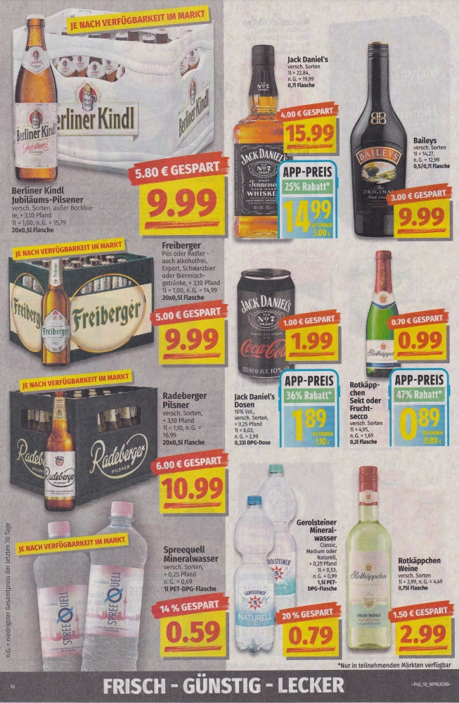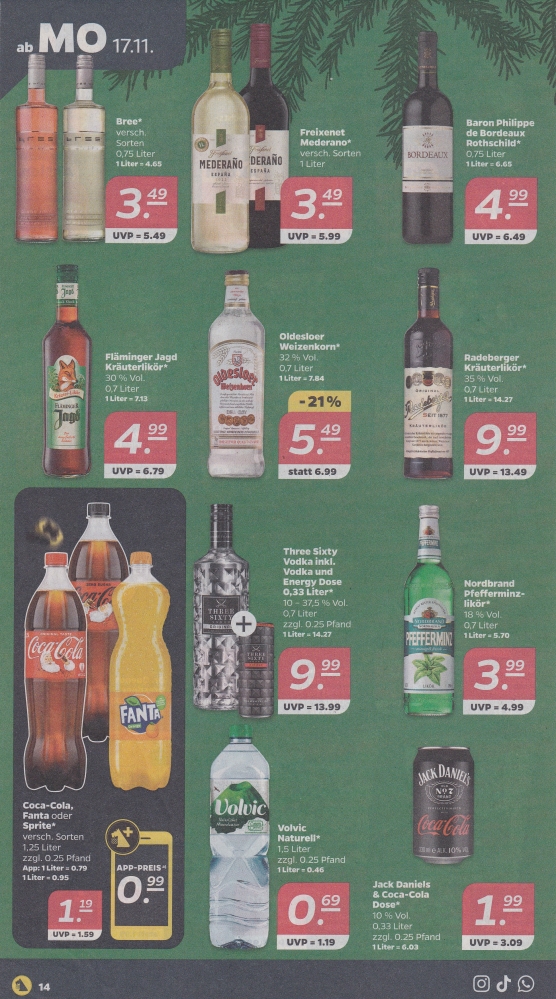| Coca-Cola und Fanta Einzeldose für -,79 €, 6 Dosen für 3,90 €. Jack Daniel's Einzeldose für 1,99 €. | ||||||