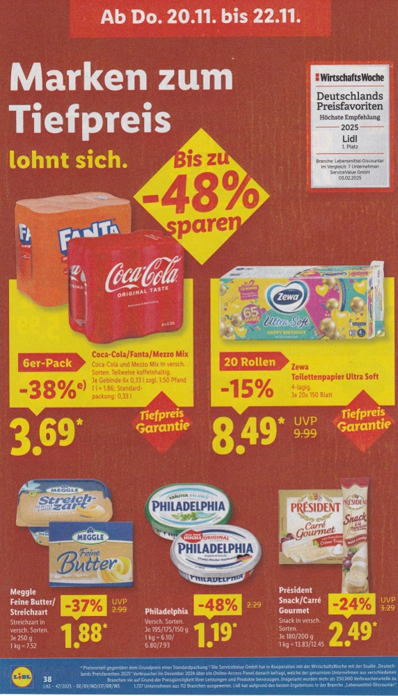 | Alle Produkte diverser Coca-Cola Marken 25% billiger. Anmerkung: Abgebildet wurden teilweise bis zu 13 Jahre alte Grafiken. | ||||||