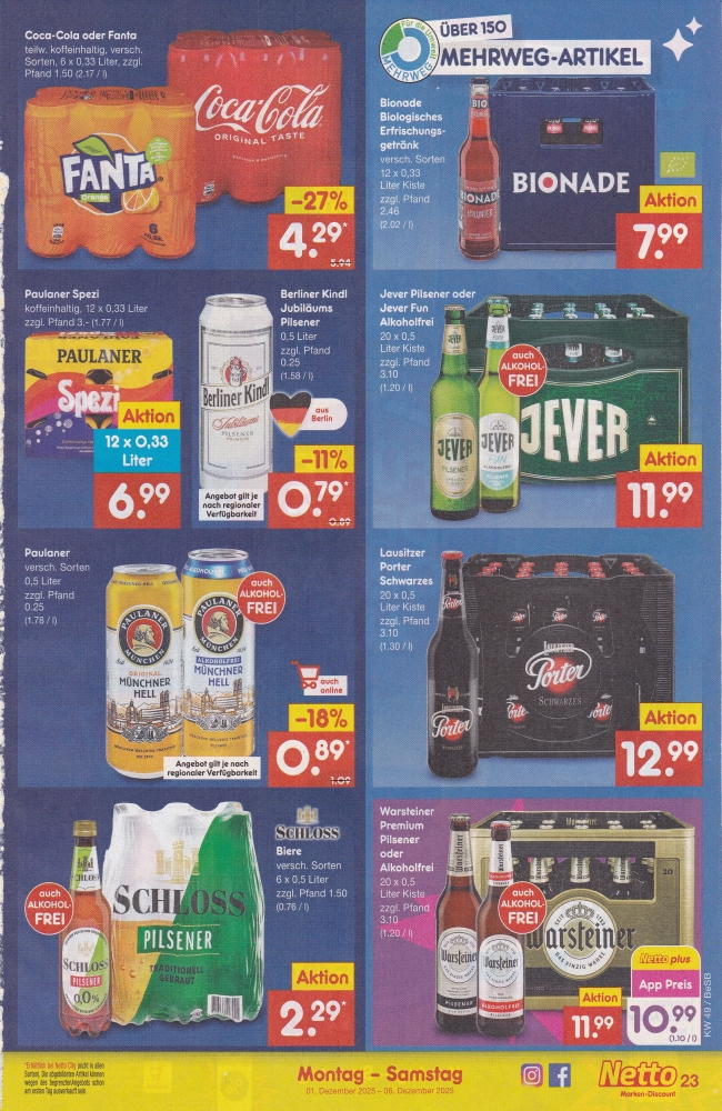 ![]() Netto Marken-Discount Coca-Cola und Fanta Sixpack | ||||||