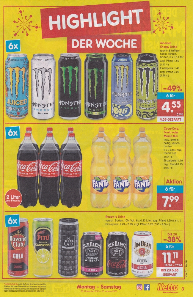 | Jack Daniel's & Coca-Cola 6 Dosen für 11,11 €. Coca-Cola 18er Pack für 8,99 €. | ||||||