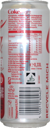 | Neue 0,33 L Coca-Cola light Dose. (weitere Variante) | ||||
