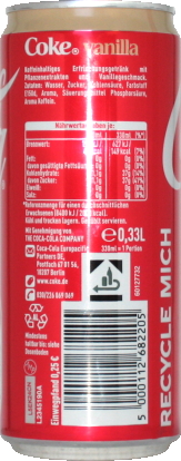 | Neue 0,33 L Coca-Cola Vanilla Dose. | ||||