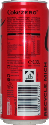 | Neue 0,33 L Coca-Cola zero Dose. | ||||
