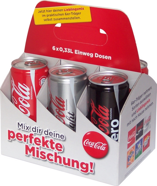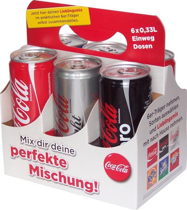 ![]() Adventskalender mit 6x Coca-Cola, 4x Coca-Cola zero, 4x Coca-Cola light und 6x Fanta Dosen. |